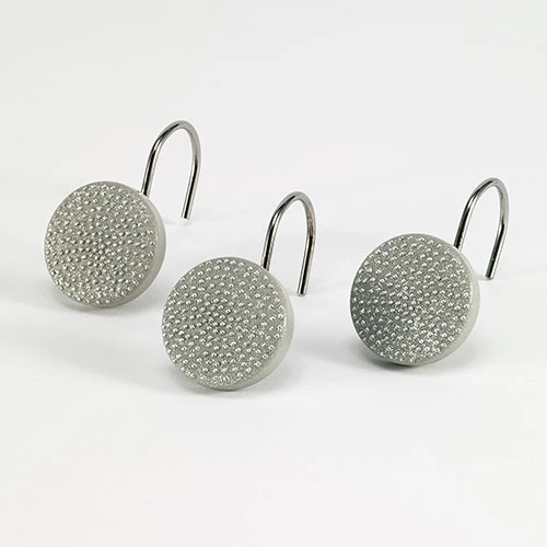 The Avanti Dotted Circles shower curtain hooks will finish the look of your bathroom, made in durable resin and adds a contemporary flair to any bathroom. Wipe with a damp cloth to clean. Dimensions: .31โH x 1.5โW x 1.5โD.