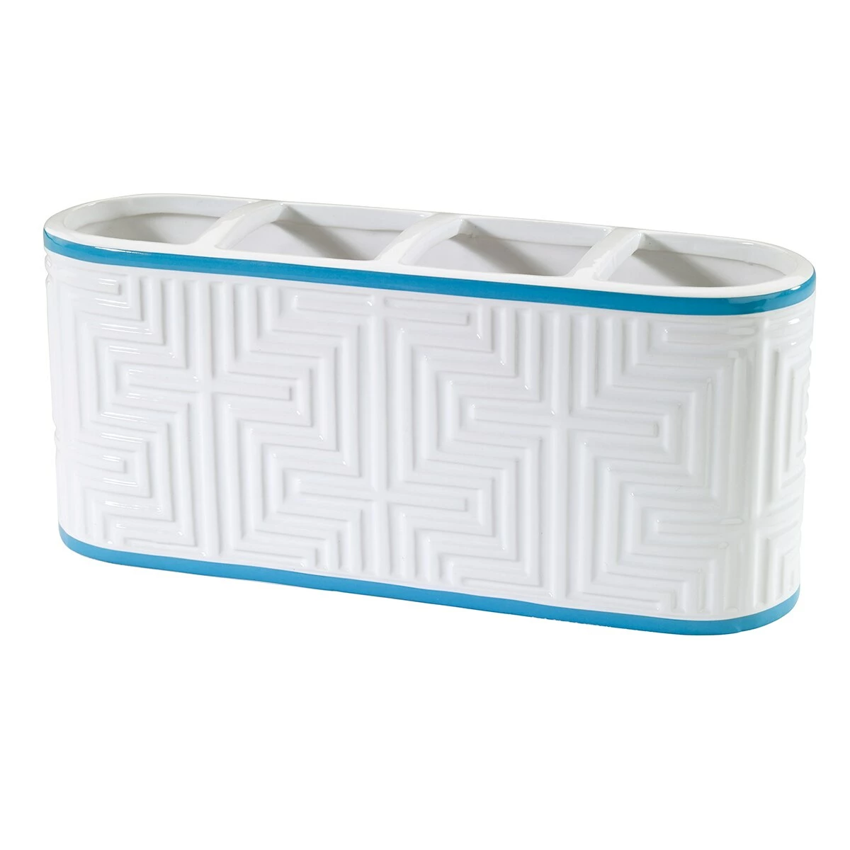 Add this Avanti Now House by Jonathan Adler Mercer beauty organizer to your bathroom collection. It is decorated with a debossed maze pattern highlighted with an aqua stripe at the top and bottom.