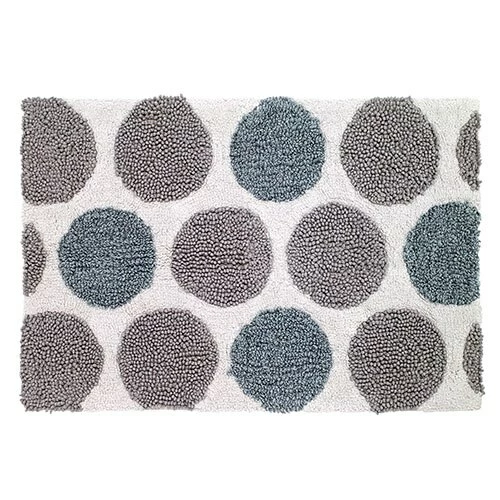 The Avanti Dotted Circles bath rug is tufted in blue and grey with metallic accents that adds the perfect touch of updated elegance and sophistication to any bathroom. 100% Cotton exclusive of embellishment. Machine wash warm and tumble dry low. Size 20 x 30.