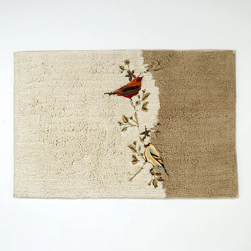 Gilded Birds rug is tufted of 100% cotton and embroidered with the bird motif.