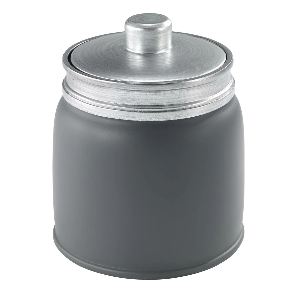 The Avanti Memphis Grey Jar will deliver a smooth and simple look to your home. Features a matte grey finish with beveled industrial accents in vintage silver matte. Crafted in durable resin for long life.