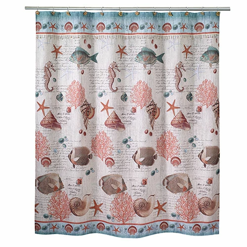 The Avanti Seaside Vintage shower curtain has a full coverage printing of brightly rendered sea creatures, adding a big splash of bold color to any bathroom dΓ©cor. 100% Polyester. Machine wash warm tumble dry low. Size 72 x 72.