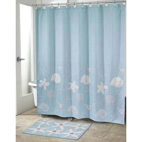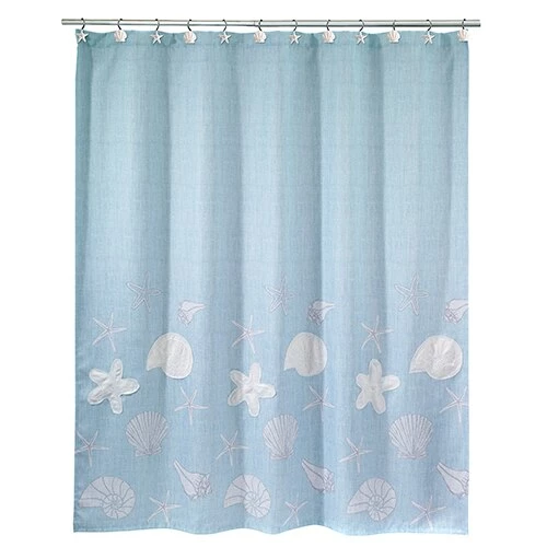 The Avanti Sequin Shells Shower Curtain offers a clean, updated coastal look for your bathroom. Features an off-white textured body with raised shells and starfish with silver highlights.