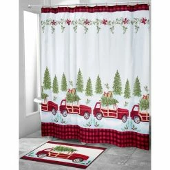Add some holiday cheer to your bathroom with this festive Avanti woody wagon fabric shower curtain.
