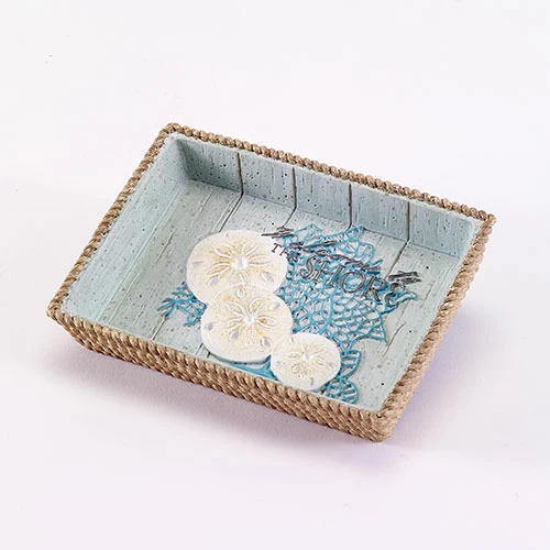 The Avanti Beachcomber soap dish is crafted in resin for incredible detail. The coral and sand dollar motif is set off beautifully on an aqua clapboard background and finished with rope detail. Wipe with a damp cloth to clean. Size: 5.91 inch.