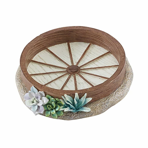 The Avanti Canyon soap dish features a realistically rendered covered wagon wheel with desert flowers in lilac, blue and green on an off white base adding just the right touch of the southwest to any bathroom. Wipe with a damp cloth to clean. Dimensions: 1.06โH x 5.31โW x 5.51โD.