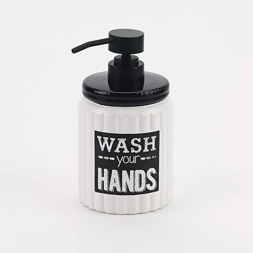 The Avanti Chalk It Up lotion pump has a fluted white body, black trim and “Wash your Hands” written in chalk adding a bit of fun and whimsy to any bathroom. Wipe with a damp cloth to clean. Dimension: 7โH x 3.31โW x 3.31โD.