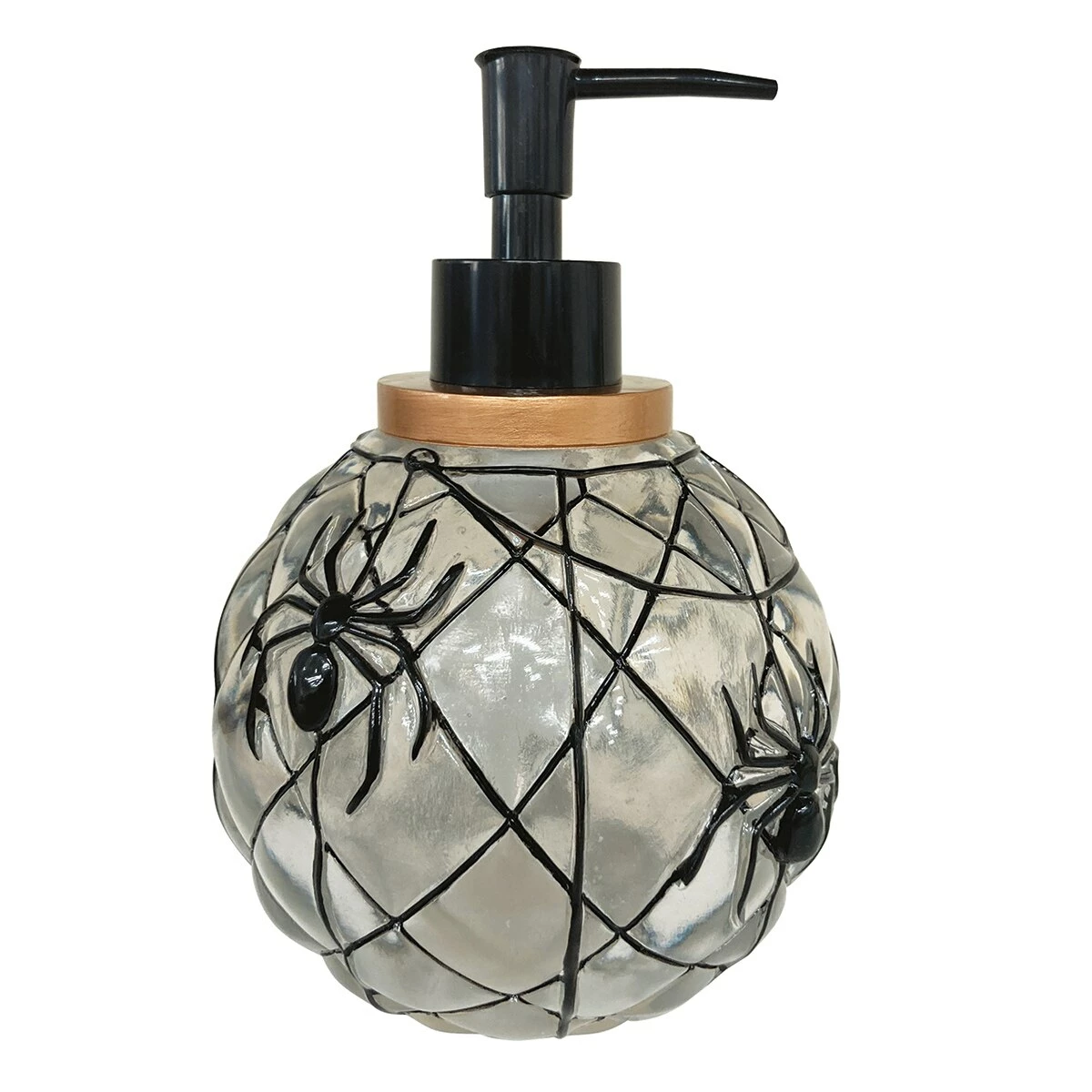 Upgrade your home with this Avanti Clear Pumpkin Spider Lotion Pump. It is a translucent clear pumpkin with black spiders and a coordinating black pump. Brings a bit of Halloween spirit to any bathroom or kitchen.