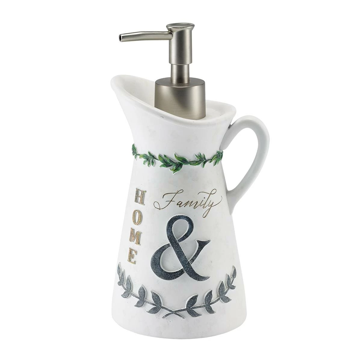 Bring one of today’s most popular decorating motifs to your home. The Avanti Modern Farmhouse Lotion Pump replicates a classic milk pitcher and is adorned with icons, words, and phrases for a unique look. It is crafted in great detail in hand-painted resin.