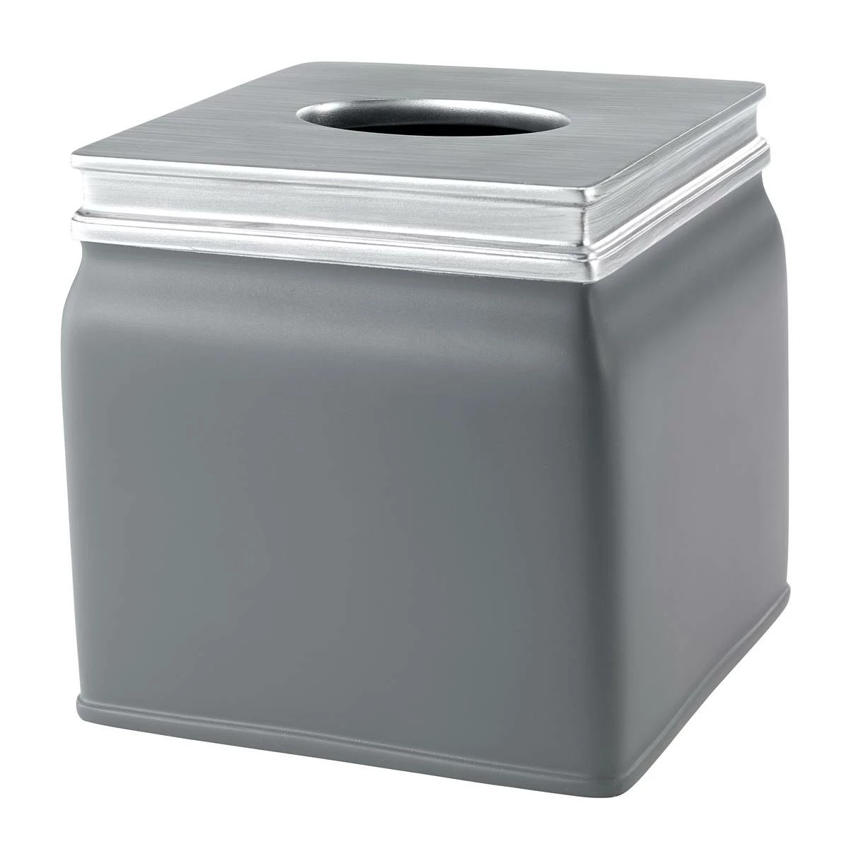 The Avanti Memphis Grey Tissue Cover will deliver a smooth and simple look to your home. Features a matte grey finish with beveled industrial accents in vintage silver matte. Crafted in durable resin for long life.