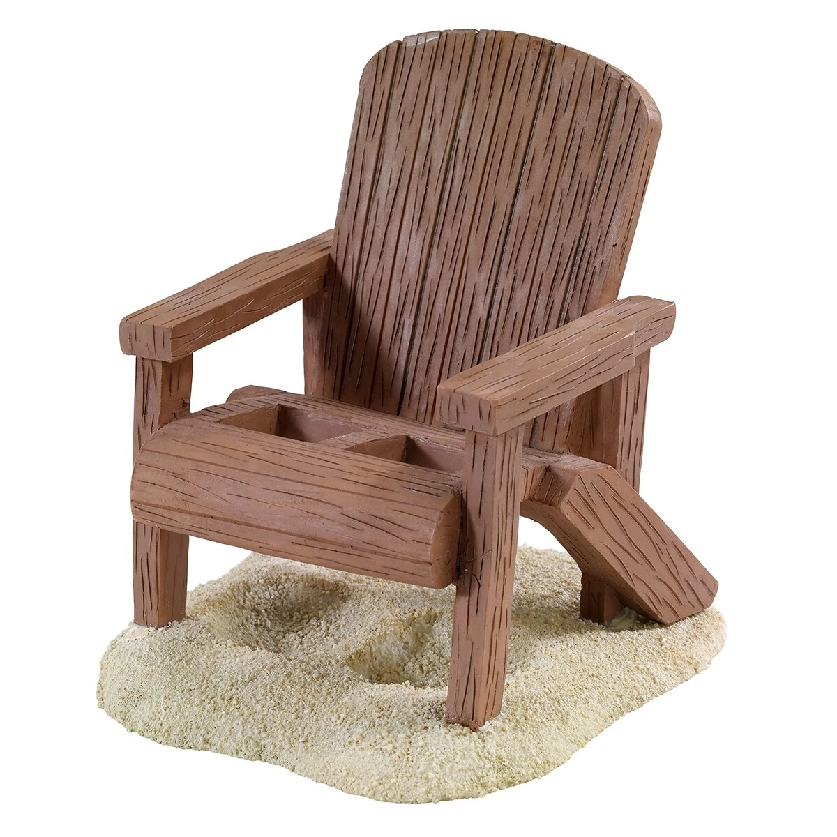 The Avanti Gone Glamping toothbrush holder is a brown Adirondack chair set on a sand base with room for four toothbrushes. Created in hand-painted resin with incredible detail.