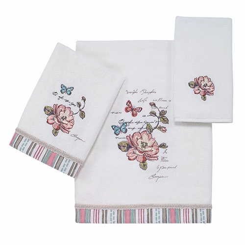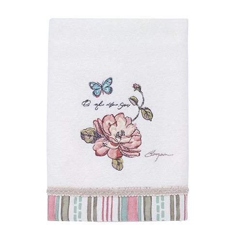 The Avanti Butterfly Garden bath towel brings a classic floral design that brightens your bathroom. The soft fabric is decorated with flowers and butterflies.