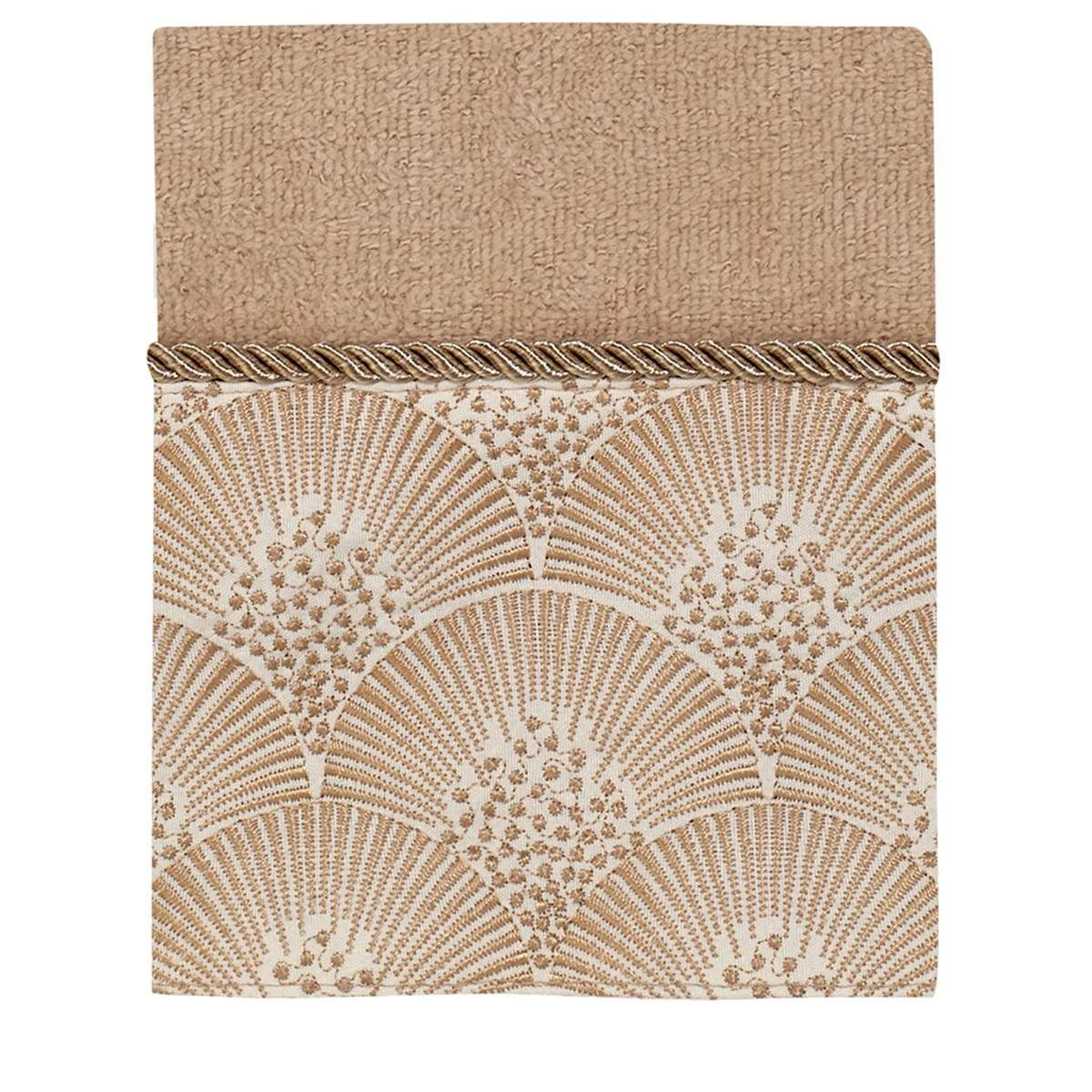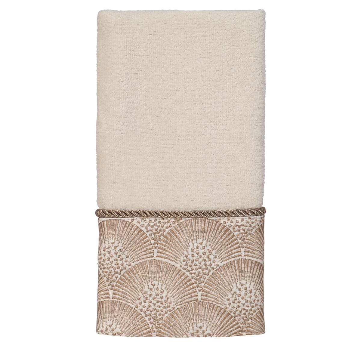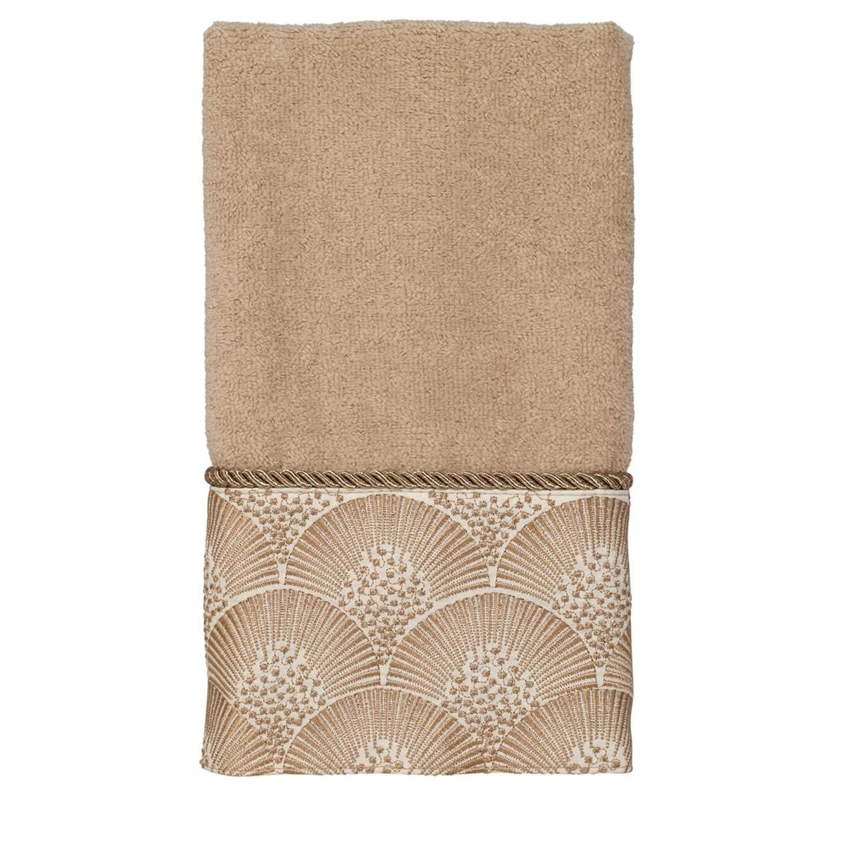 This Avanti Deco Shell Towel Collection features an embroidered band of coordinating gold shells on a tonal fabric. The band is finished with a coordinating rope trim that gives the towel a touch of delicacy.