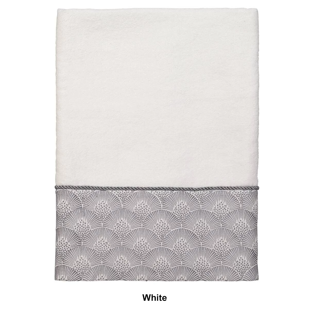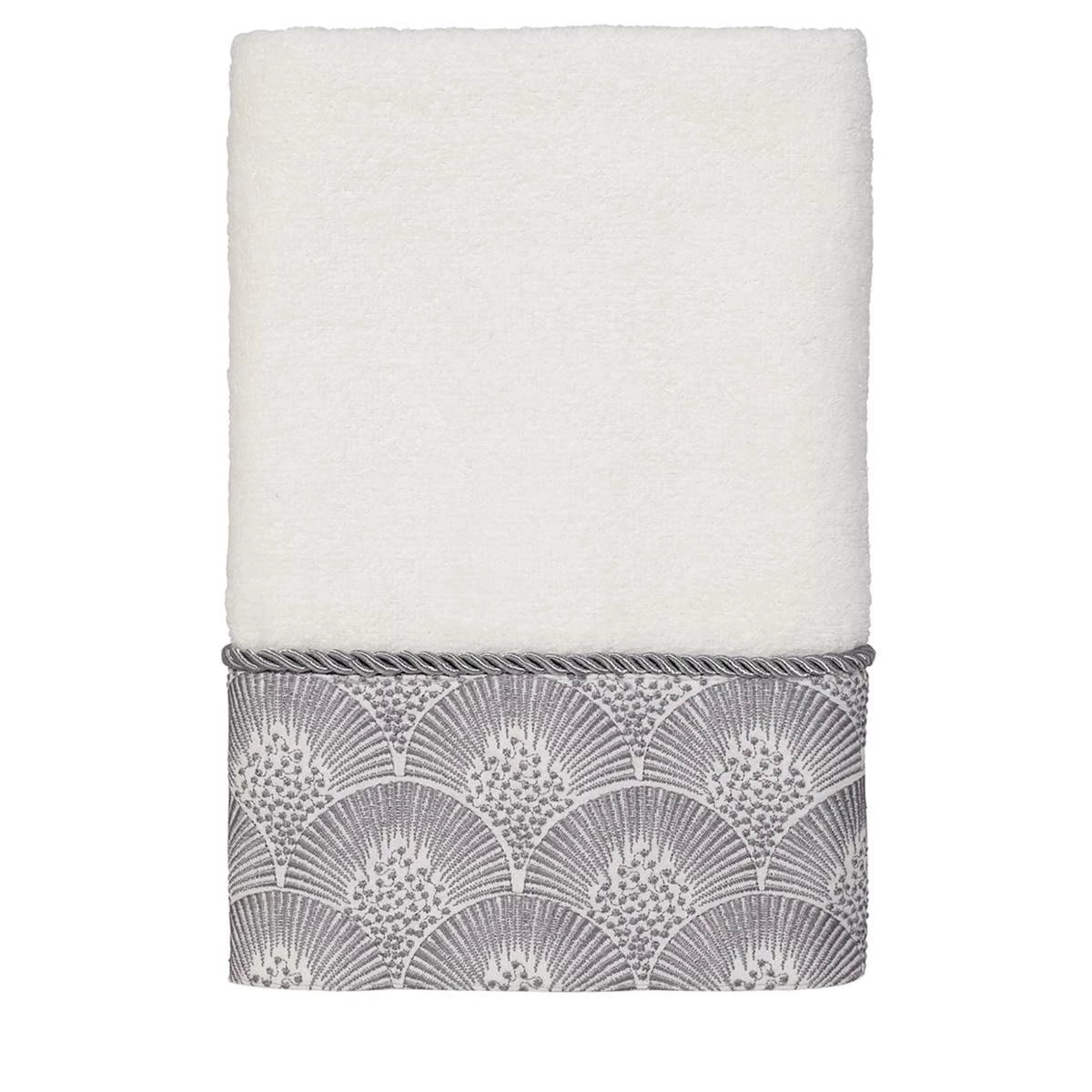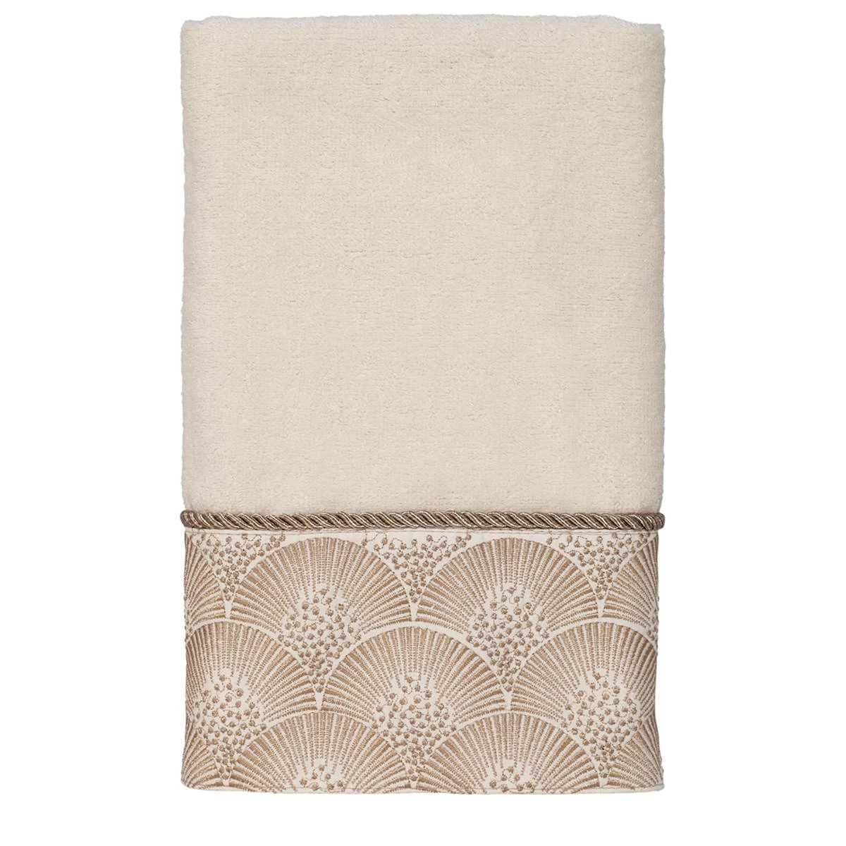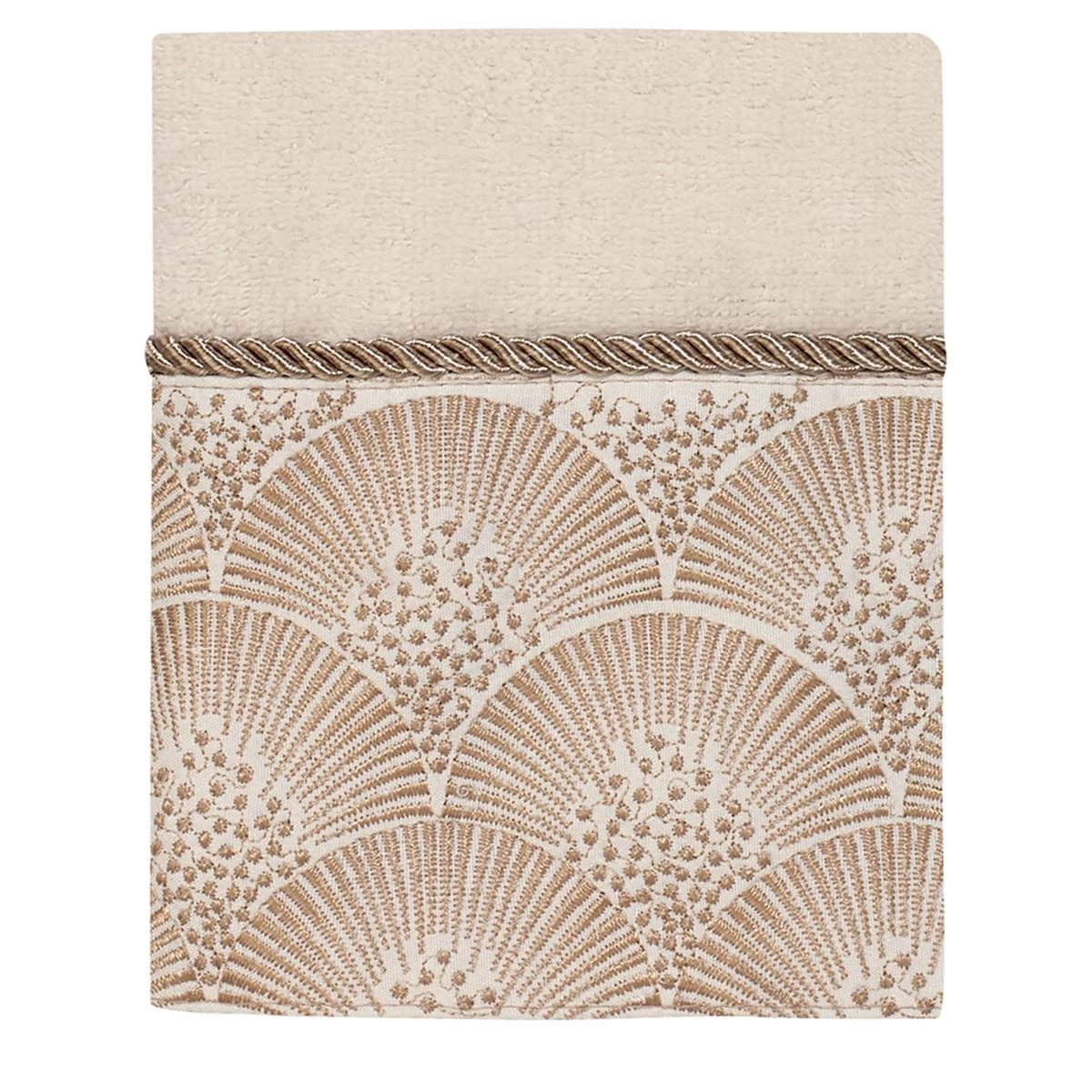 This Avanti Deco Shell Towel Collection features an embroidered band of coordinating gold shells on a tonal fabric. The band is finished with a coordinating rope trim that gives the towel a touch of delicacy.