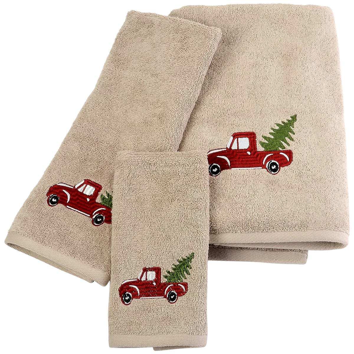 The Avanti holiday truck bath towel collection is embroidered with a large, red truck and green tree. Perfect for incorporating your holiday style in every room in your home.