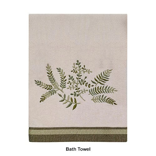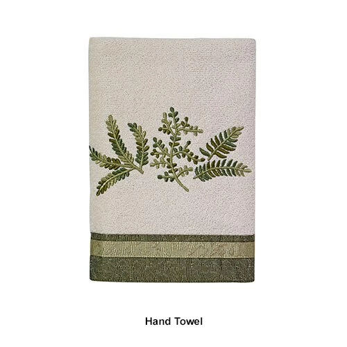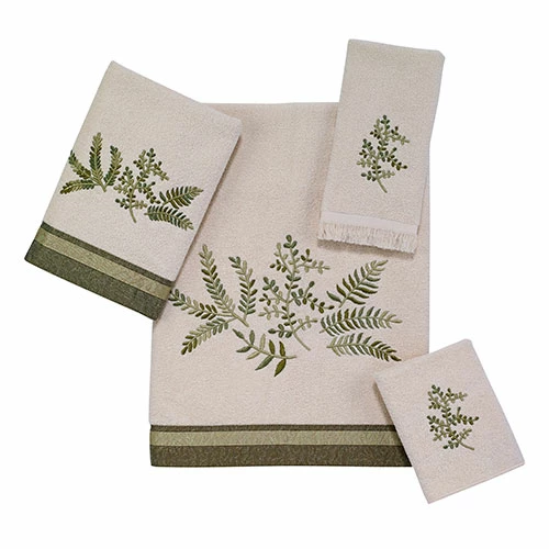 The Avanti Linens Greenwood towel collection showcases a beautiful botanical motif in various shades of green on an ivory towel with a two-tone fabric border. This set would make a great update to any bath dΓ©cor. 100% Cotton exclusive of embellishment. Machine wash warm, gentle cycle, tumble dry low. Dry cleaning recommended.Limited Manufacturer’s Warranty.