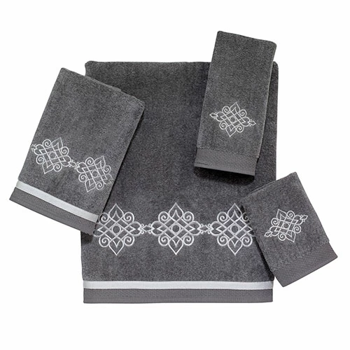 The Avanti Linens Riverview towel collection showcases classic medallion embroidery with a coordinating silver ribbon trim. This set would make a great update to any bath dΓ©cor. 100% Cotton exclusive of embellishment. Machine wash warm, gentle cycle, tumble dry low. Dry cleaning recommended.Limited Manufacturer’s Warranty.
