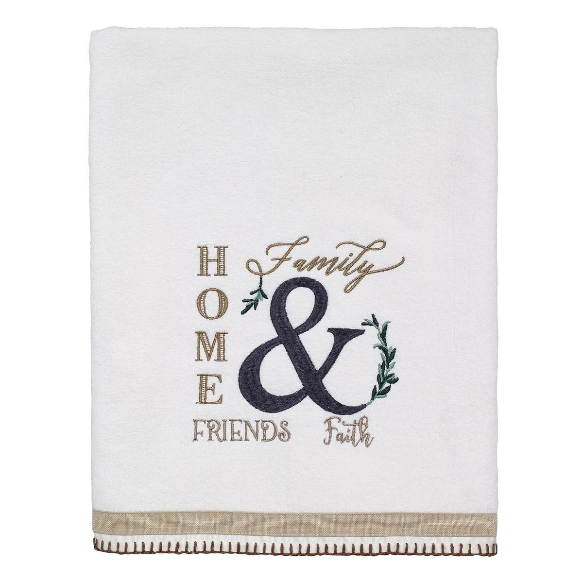 Invite a vintage, rustic-inspired aesthetic to your washroom with the Avanti Modern Farmhouse Bath Towel. Made with luxuriously plush and absorbent cotton, this towel is designed with a sweet sentiment for a welcoming touch to your dΓ©cor.