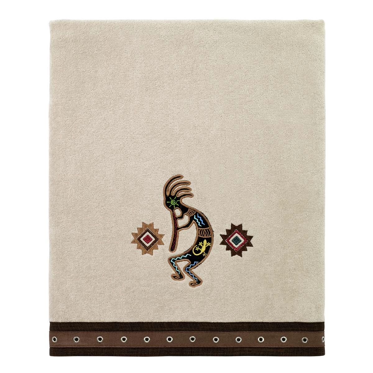 Bring a unique look to your bathroom dΓ©cor with this Avanti Navajo Dance Bath Towel. Features an embroidered Kokopelli in brown with colorful accents and southwest symbols on either side.