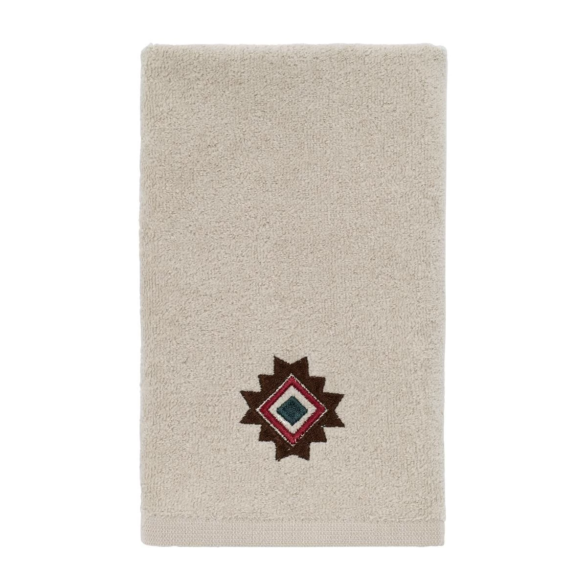 Bring a unique look to your bathroom dΓ©cor with this Avanti Navajo Dance Fingertip Towel. Features an embroidered southwest symbol in brown, brick, teal, and ivory.