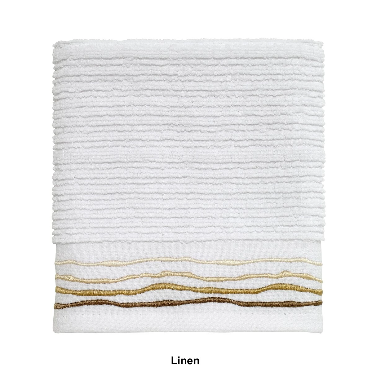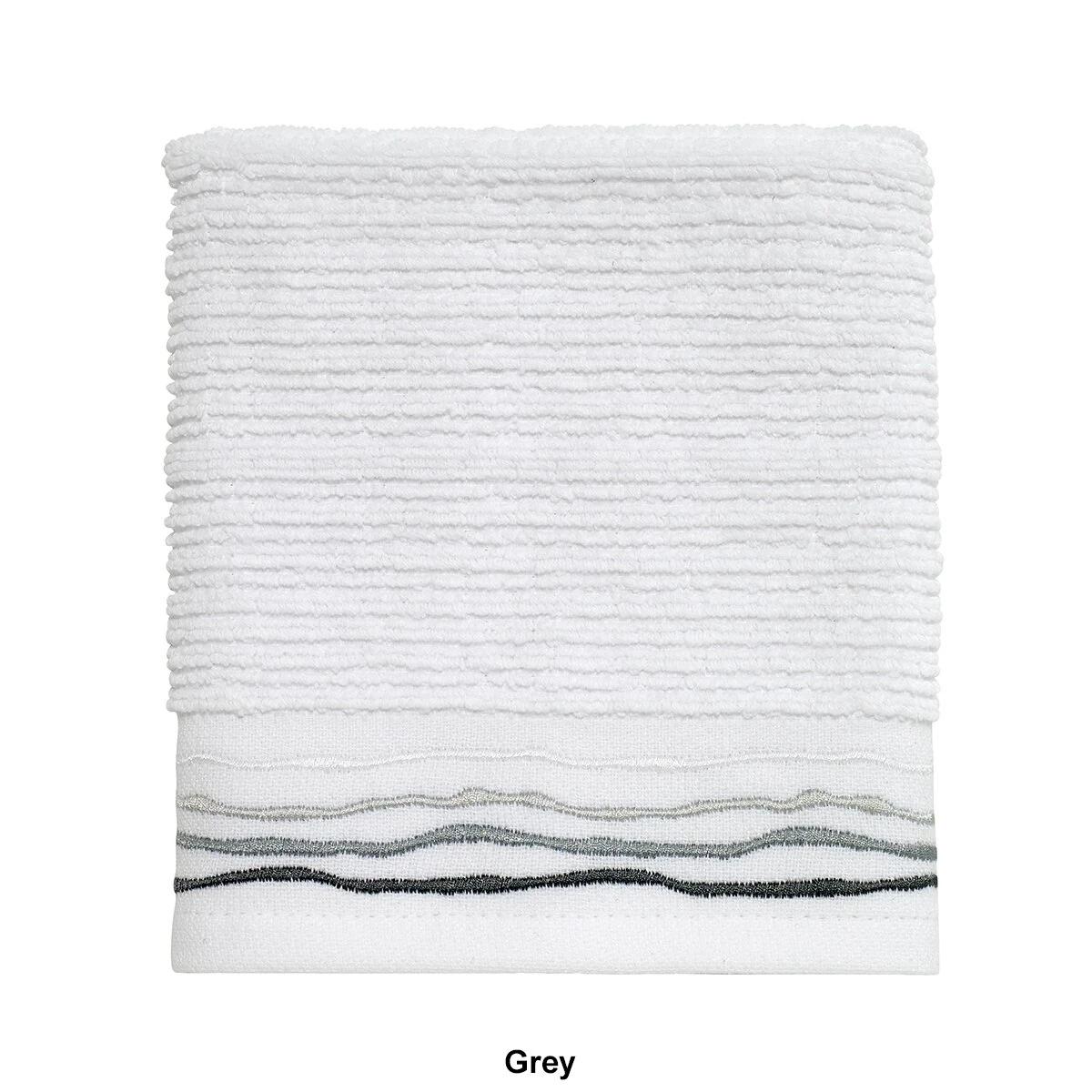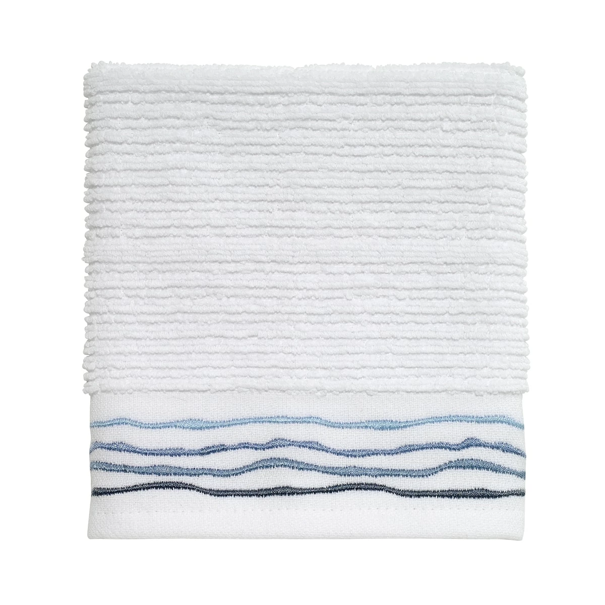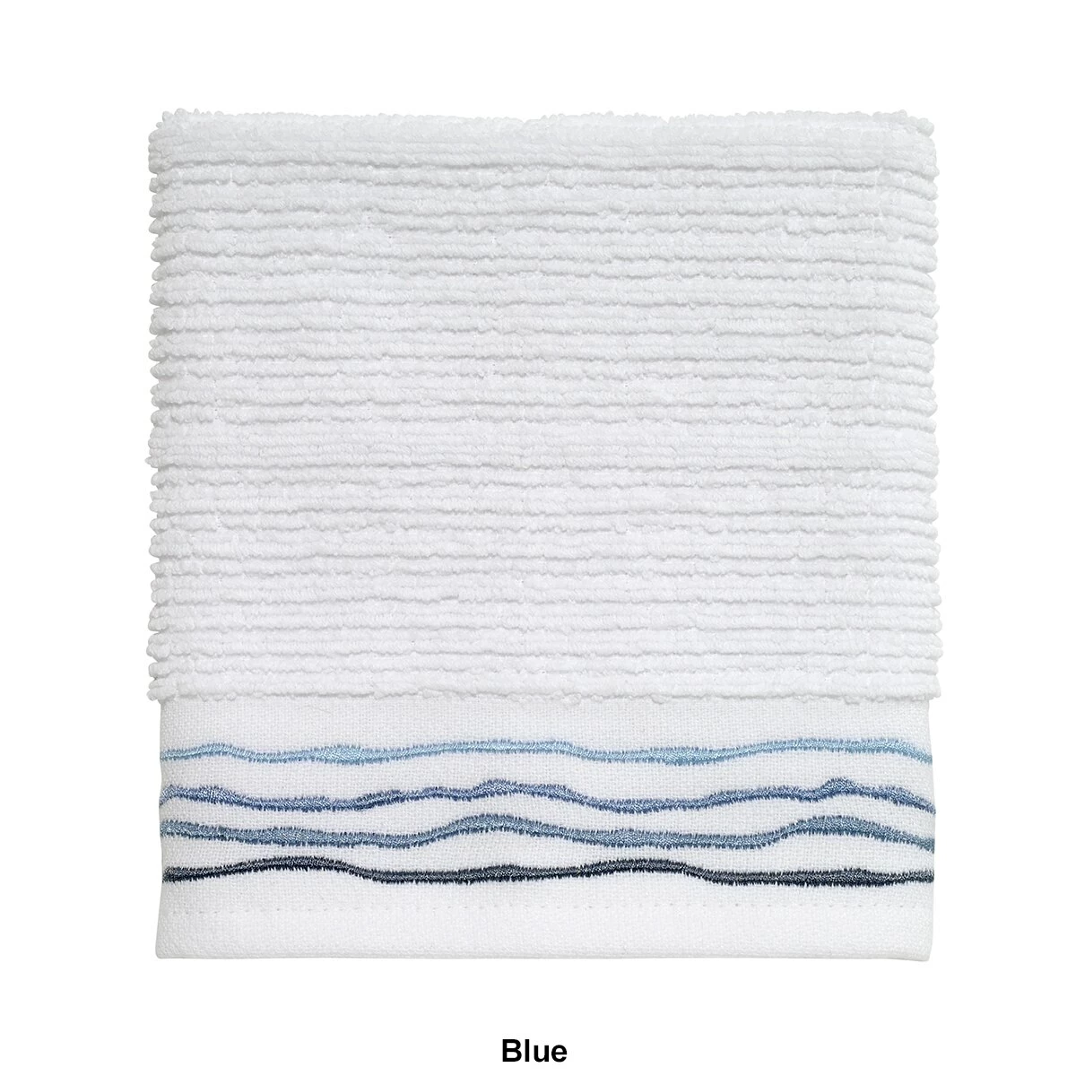 The Avanti Ripple washcloth features a wave embroidery on the flat-woven end-hem in shades of blue. This washcloth works with almost any decor for a clean, updated look.