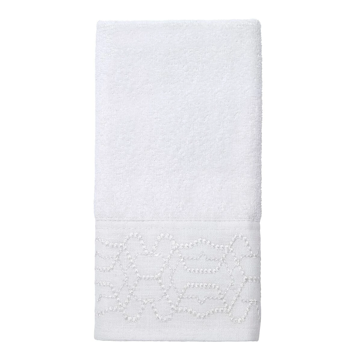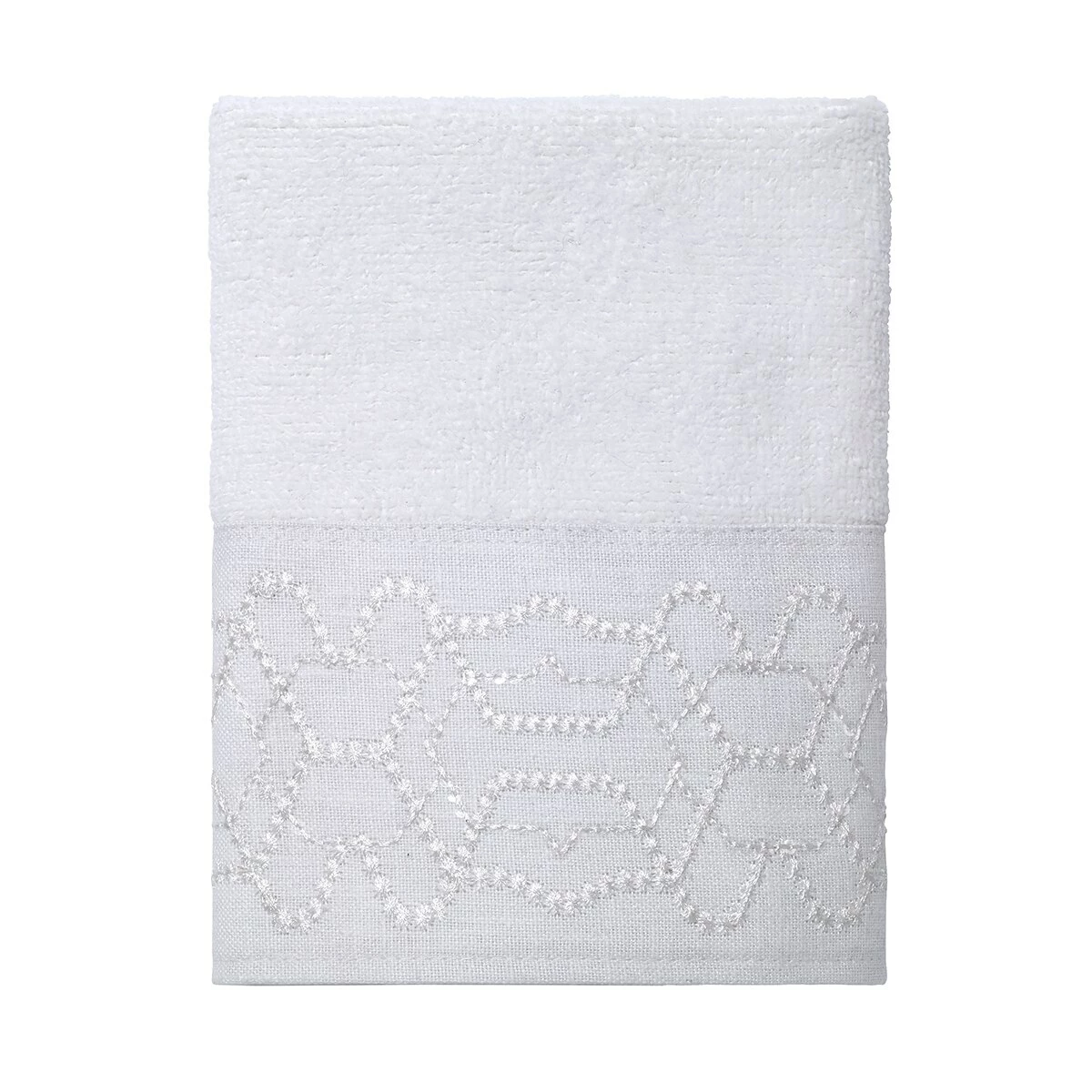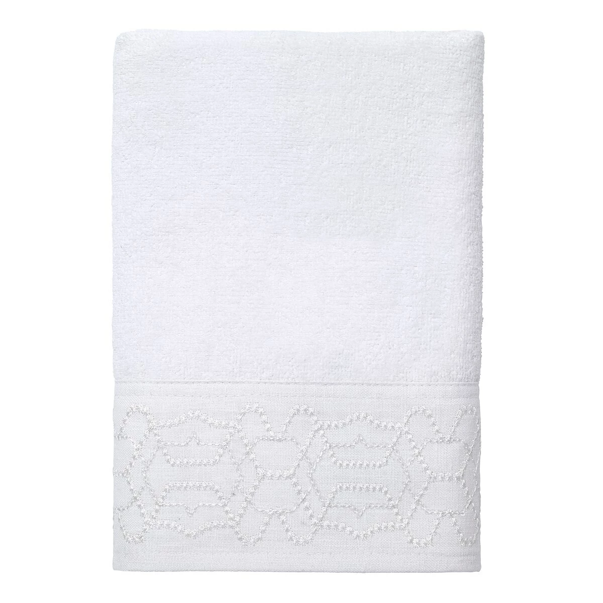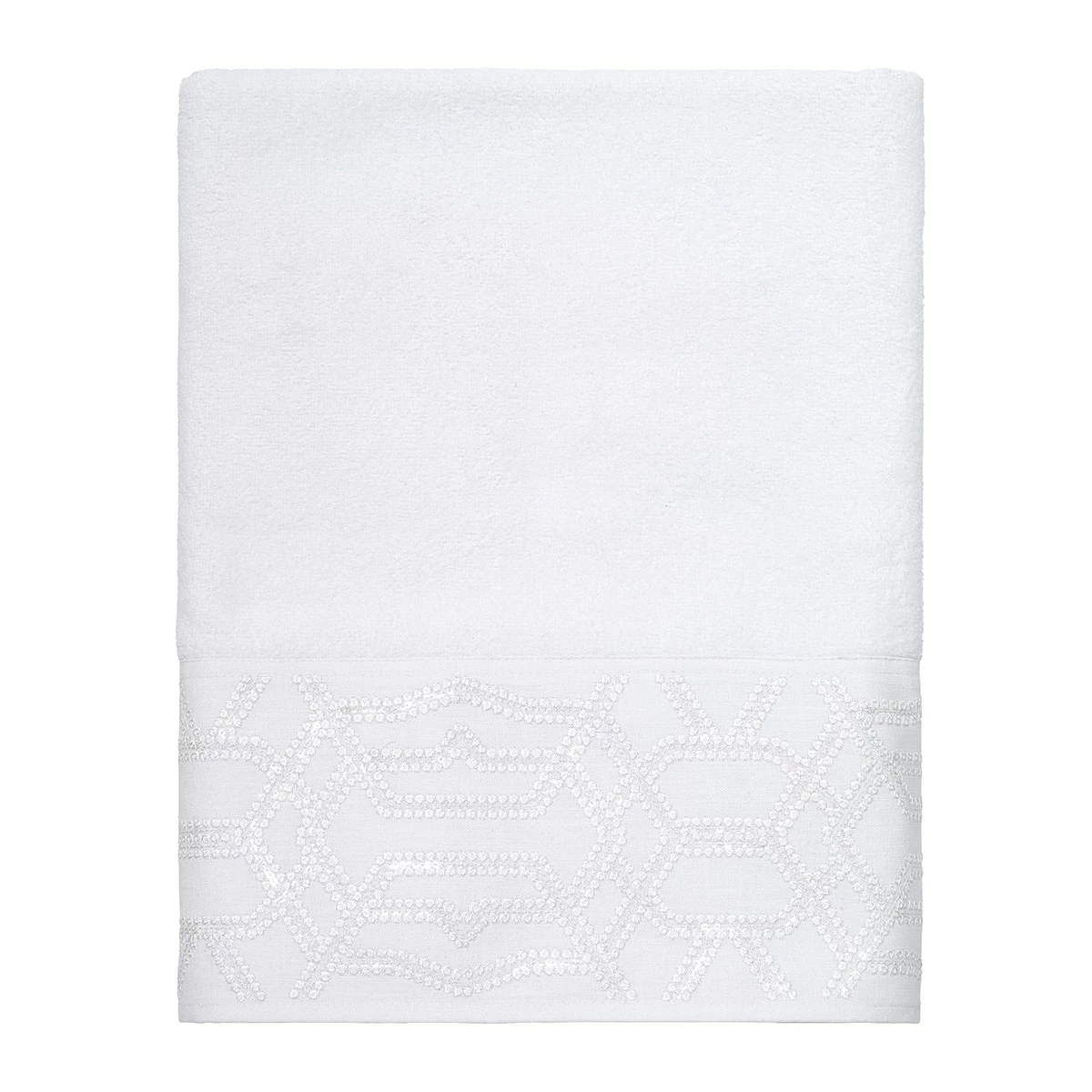 The Avanti Serafina bath towel collection will add an elegant, upscale look to any bathroom. Each towel is decorated with a dry, tonal fabric border with white embroidery forming a geometric pattern and clear sequins for a hint of shine.