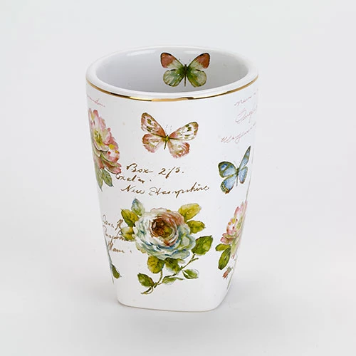 The Avanti Butterfly Garden ceramic tumbler is decorated with beautiful and classic flowers plus bright butterflies. It will add style and color to your bathroom.